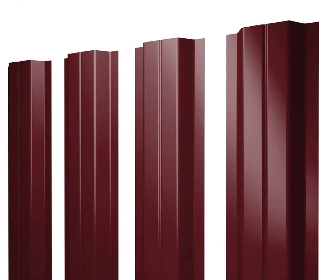 Надежность. Секции евроштакетника п-образного 0,35x110 мм вишневого ral 3005 1м можно размещать на расстоянии от 2 до 4 см друг от друга при одностороннем монтаже. Таким образом, владелец частного дома или предприятия может быть уверен в конфиденциальности.